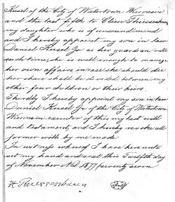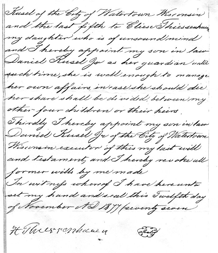 | Heinrich Thiessenhusen’s will names his children as heirs and his son-in-law, Daniel Kusel, Jr., as executor. |