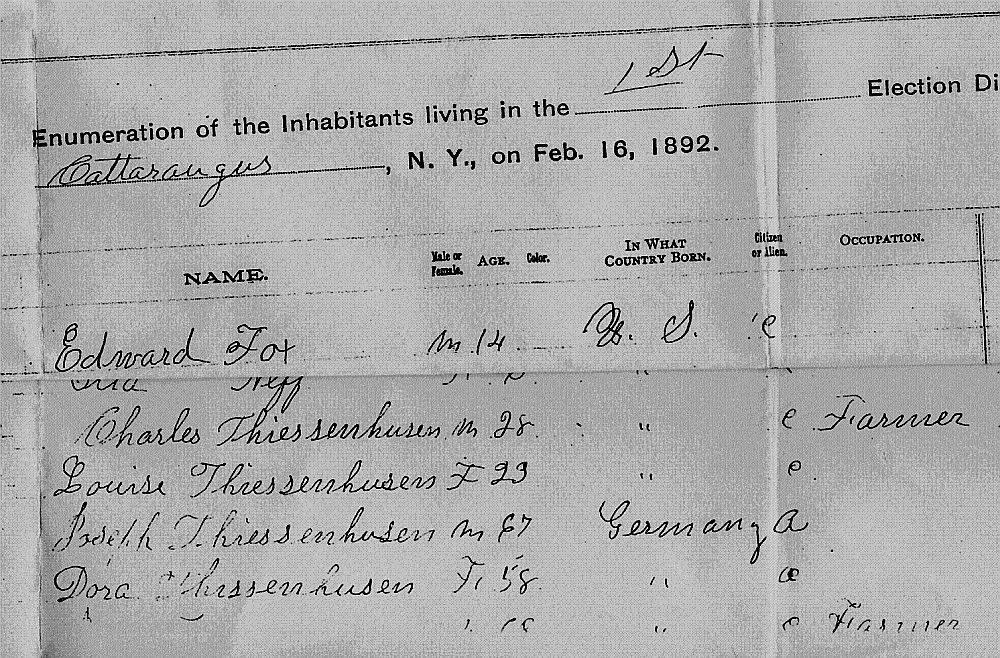 This is the earliest reference to Joseph (Joachim) and Dorothea Thiesenhusen in New York. They were living with their son and daughter in law Charles and Louise.