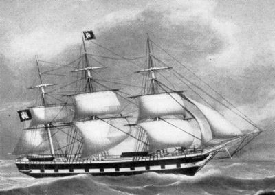Joachim und Dorothea Thiessenhusen und ihr Sohn wanderten 1858 nach Amerika mit der “Gutenberg” , einem Dreimaster, Rahsegelschiff aus. Die Atlantiküberfahrt dauerte 6 Wochen. zweimal länger als die der anderen Thiessenhusen-Brüder, die mit Dampfschiffen gereist waren. – (Bild: Museum für Hamburgische Geschichte, Hamburg, Deutschland)