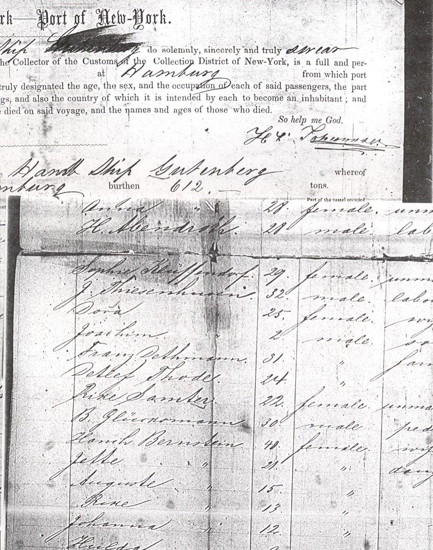 Photo: “Gutenberg” Ship Manifest New York, 1858
