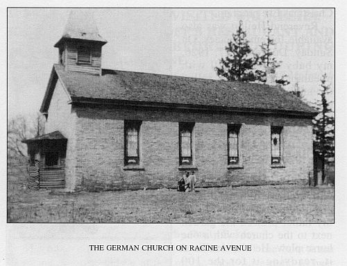 This is a close up photo of the “brick church” on Racine Avenue. The Thiessenhusens attended services here from about 1865 to 1880. Although the church and parsonage were demolished in 1955, the cemetery remains. The cemetery is now maintained by the New Berlin Historical Society. |