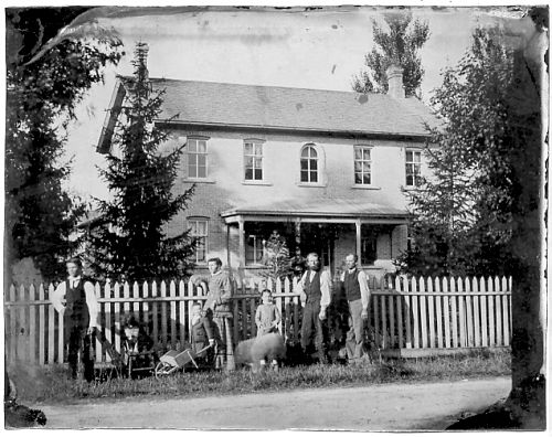 Marie Thiesenhusen, das älteste Kind von Wilhelm und Elisabeth, heiratete 1865 George William Wollmer. Ihre Kinder sind William, George und Mary. Die Erwachsenen in der Mitte sind Mary Thiesenhusen Wollmer, George Wollmer und Adolph oder Ferdinand (?) Wollmer (Georges Bruder). Ihr Bauernhof befand sich in der National Avenue in Greenfield, Wisconsin. Das Foto ist von 1885.