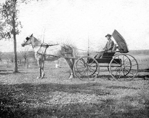 “Uncle Charlie” showing his horse and buggy in New Berlin, Wisconsin. Photo from the early 1920s. |