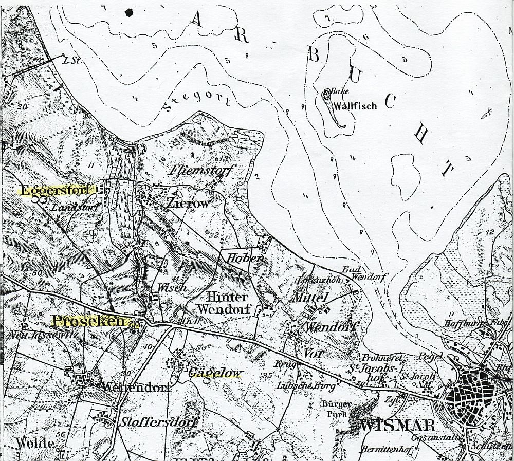 Just to the northwest of Wismar is the parish village of Proseken the area the Thiessenhusens lived in the late 1600s.