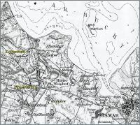 The darkened area is the exact location where the Thiessenhusen family lived from 1776 to 1900s, once known as Hufe V. This land is south of central Rosenow, near Käselow.