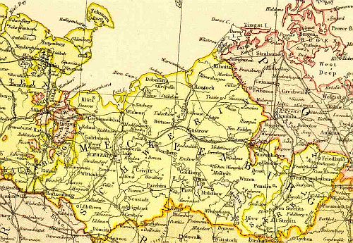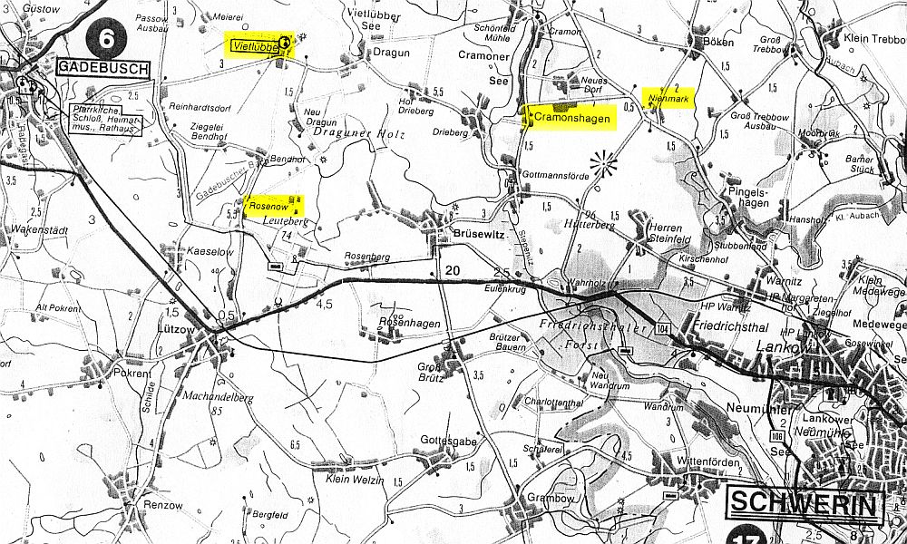 The ancestral villages of the Thiessenhusen family are located between Schwerin and Gadebusch, and north of Wismar on the Baltic Sea.
