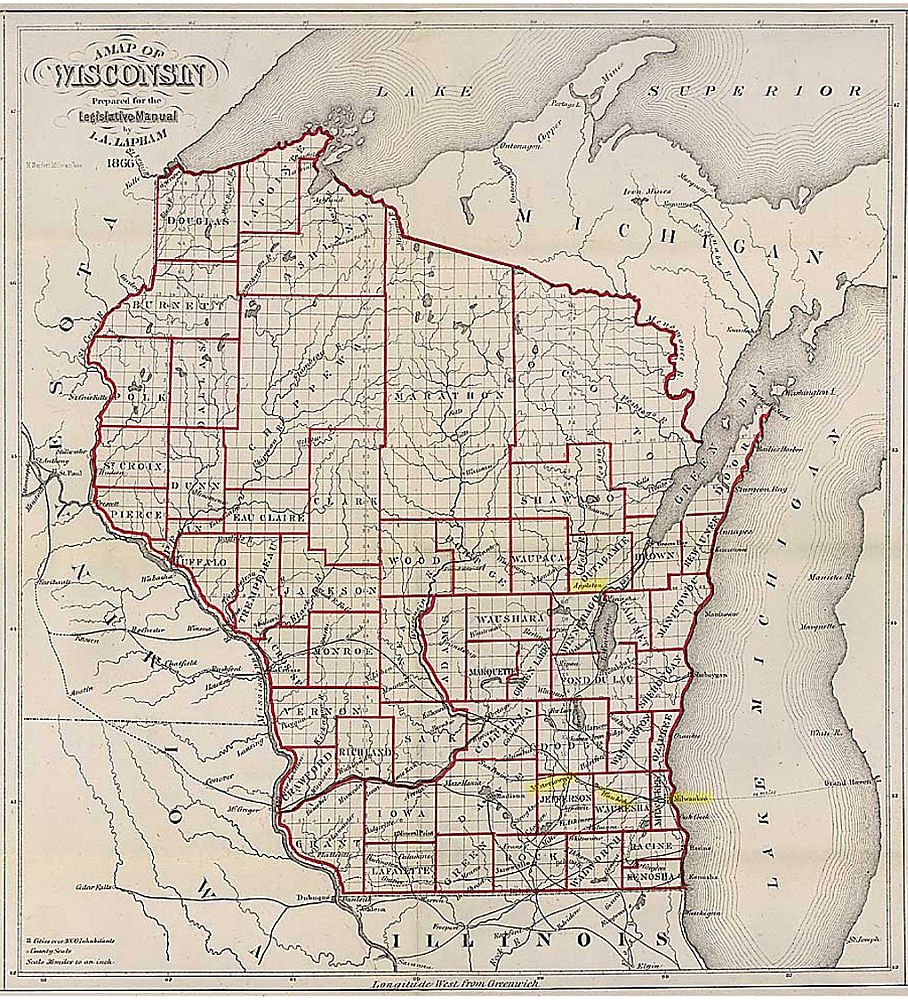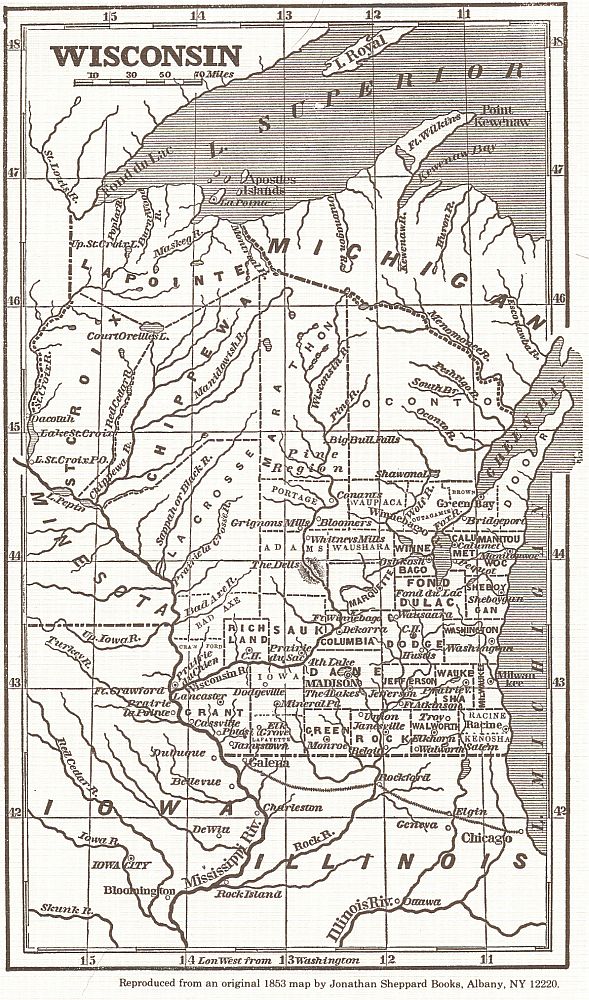 This interesting early Wisconsin map shows only a few of the state’s modern counties.